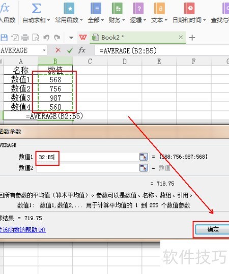 6、 在函数参数框内选择B2至B5单元格的数值。