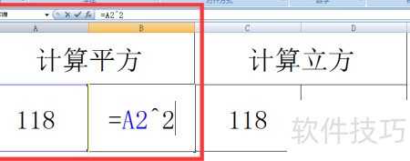 3、 输入公式后按键盘上的Enter键,即可完成平方计算。