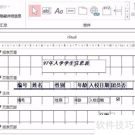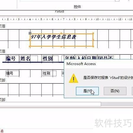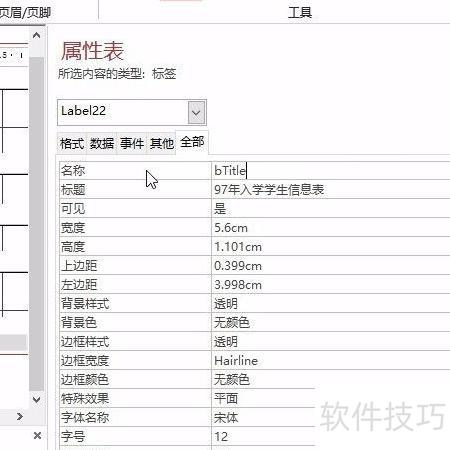 今日分享内容为ACCESS二级考试技巧:如何在报表中添加标签控件。具体操作如下:进入报表页眉节,插入标签控件,将其命名为bTitle,并设置标题文字为97年入学学生信息表,详情可参考下方图示的动态演示与步骤分解。