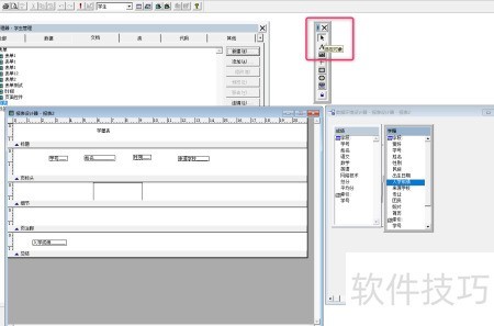 6、 在报表控件的按钮工具栏中选择目标对象,操作所示。