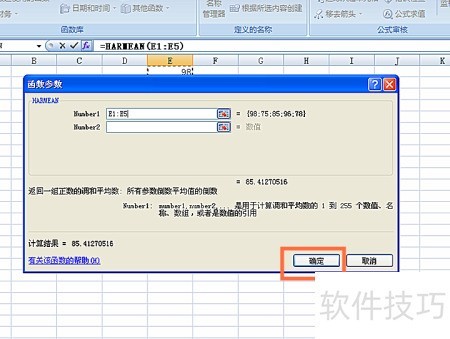 4、 选用调和平均函数,见图示