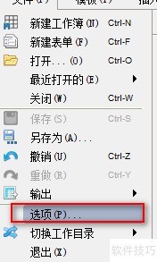 7、 点击工具栏最左侧的文件按钮,在下拉菜单中依次显示多个选项,按从下往上的顺序数,选择第三个即可,无需事先开启模板。