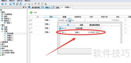 6、 选择变量后点击连接以配置通讯驱动程序。