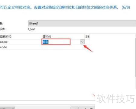6、 选择Excel列与表字段的对应关系,然后点击下一步继续操作。