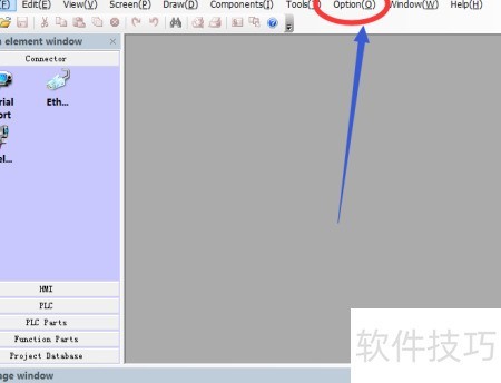 1、 启动步科触摸屏编程软件,点击菜单栏中的选项。