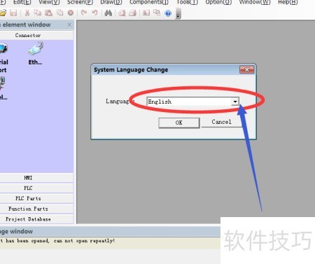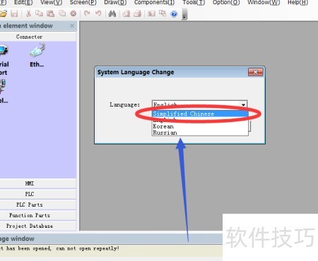 使用步科触摸屏编程软件时,若界面为英文,可进入软件设置中的语言选项,选择中文并确认更改,重启软件后即可切换为中文界面。