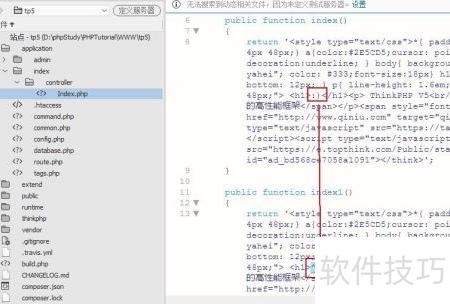 3、 例如将Index.php文件中的index方法复制一份并命名为index1,随后对index1内的代码进行相应修改。