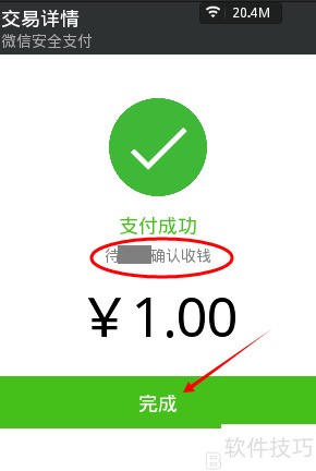 6、 输入正确密码后,页面跳转至支付成功界面,款项随即转入朋友账户,转账记录可在交易详情中查询,具体所示。