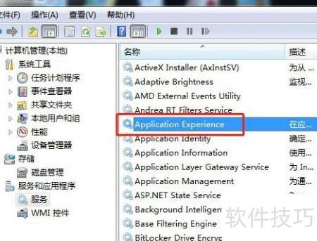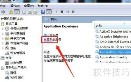 在Win7中重启应用体验服务,可进入服务管理找到Application Experience,右键选择重启即可。