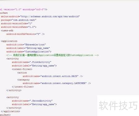 3、 在ApplicationManifest.xml中添加自定义Application的配置信息,确保应用启动时正确加载自定义的Application类。