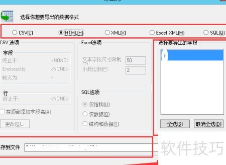 5、 选择所需的数据格式,选定要导出的字段,输入文件保存路径,点击导出按钮,随后前往指定路径即可找到已导出的文件。