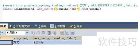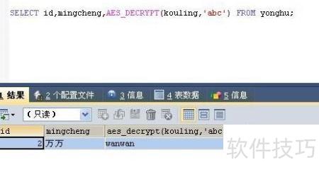 3、 AES_DECRYPT(加密字符,密钥)用于解密数据,还原出原始明文内容。