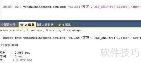 2、 AES_ENCRYPT(字符,加密密码)为加密函数,用于对数据进行加密处理,结果以latin1编码的字符串形式返回。