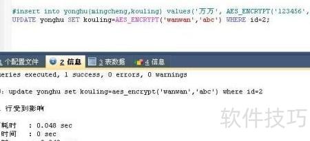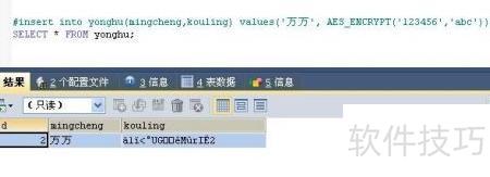 5、 向用户表中插入一条记录,用户名为万万,密码字段使用AES加密算法对123456进行加密,密钥为abc,确保敏感信息在存储过程中的安全性。