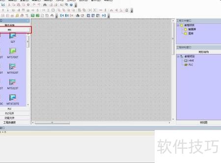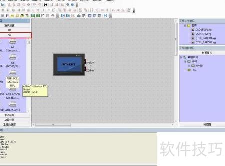 3、 接下来配置与触摸屏通信的从站设备,切换至PLC选项栏,选择所需PLC型号或其它总线从站,选中后拖入工作区,即可完成从机在操作界面上的添加。
