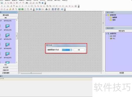 2、 进入后,在左侧选项栏中找到HMI类别,点击即可查看步科所有触摸屏型号。选择所需型号,按住鼠标左键拖至中央操作区。随后弹出设置窗口,可依据项目需求选择横向或纵向模式。确认设置后,所选触摸屏即显示在操作界面中,完成添加。