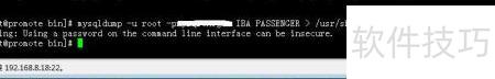 2、 执行命令:mysqldump -u root -p* IBA PASSENGER > /usr/share/nginx/html/PASSENGER.txt,将数据库IBA中的PASSENGER表导出并保存为指定路径下的文本文件。