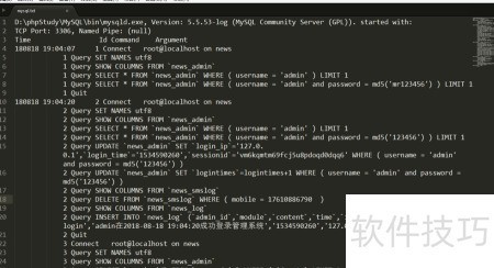 4、 执行MySQL数据操作后,数据库文件夹中将生成一个名为mysql.txt的文件。