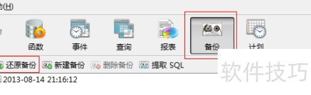 2、 点击工具栏的备份选项,再选择还原备份功能,操作所示。