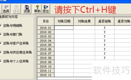 2、 在对账页面,按下键盘的Ctrl+H组合键(H键不区分大小写)。