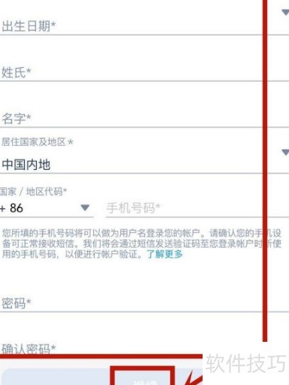 1、 填写真实信息后点击继续。
