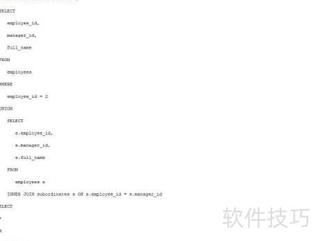 5、 该SQL通过递归CTE实现:首先定义名为subordinates的递归公用表表达式,包含非递归部分和递归部分;非递归部分作为初始结果集R0,查询出ID为2的员工信息。