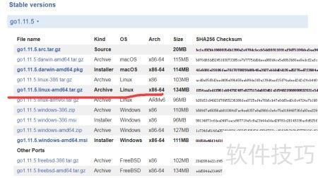 2、 根据系统位数选择相应的Go语言压缩包,32位系统下载32位版本,64位系统下载64位版本。此处选用的是go1.11.5.linux-amd64.tar.gz,因所用Ubuntu系统为64位,具体所示。