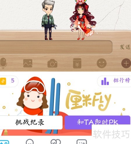 1、 点击聊天窗内的厘米秀,界面将切换至游戏模式,可实时对战或挑战对方成绩。