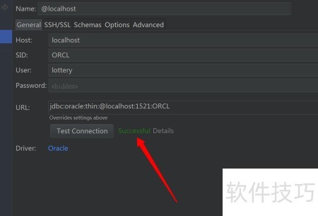 4、 配置完成后,点击检查Idea与Oracle的连接情况,若连接成功将显示相应提示信息。
