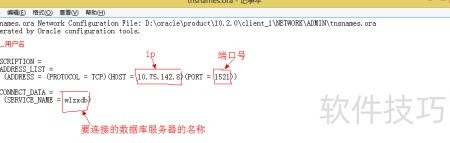 5、 在 tnsnames.ora 文件中填写用户名、IP 地址、端口号及目标数据库服务器名称,配置完成后保存文件即可。