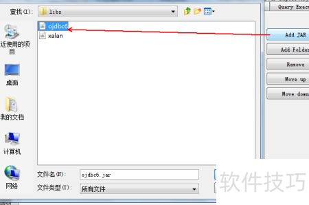 4、 在使用Oracle数据库时,需先将JDBC驱动包配置到开发环境中。进入工具菜单中的选项,选择classpath页签,点击Add Jar按钮,将事先下载好的ojdbc6.jar文件导入。若尚未下载,可先通过网络获取该驱动文件。完成添加后,原先显示为红色不可用的Oracle数据库驱动(oracle.jdbc.driver.OracleDriver)即可恢复正常,表示已成功识别并可用,后续便可顺利进行数据库连接与相关操作。