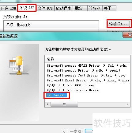 7、 建议管理员采用系统DSN或文件DSN,此处以配置系统DSN为例进行介绍。