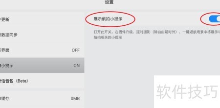 打开DJI Fly应用,进入我的选项,找到航拍小提示并点击设置。