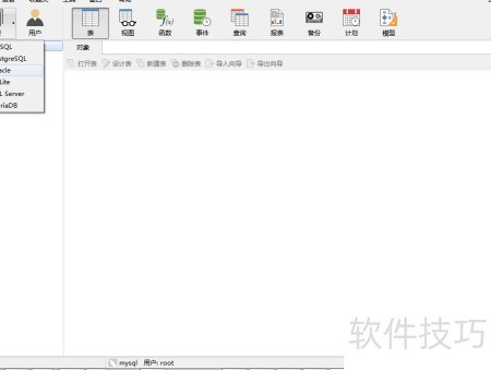 2、 点击连接菜单,从下拉选项中选择Oracle。