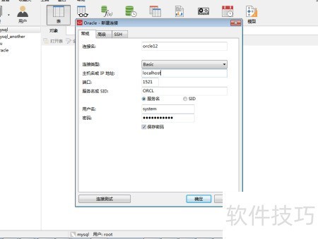 3、 输入连接名称、Oracle服务器地址及账号密码等信息。