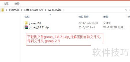 1、 从开源平台获取gSOAP,解压至本地D盘webservice目录中。