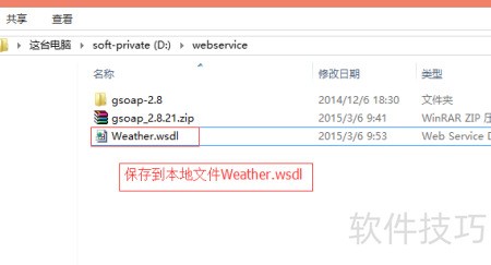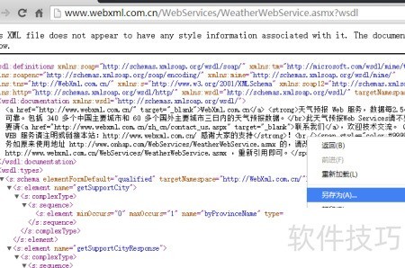 2、 以获取天气信息为例,下载天气预报的WSDL文件,并将其保存为D:webserviceWeather.wsdl。