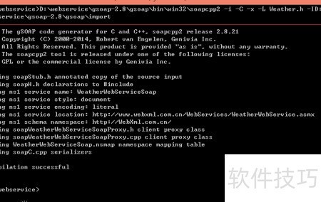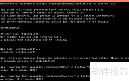 4、 根据Weather.h头文件生成对应的soap接口源代码文件。
