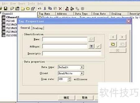11、 设置标签名称、PLC地址、描述信息、数据类型、读写方式及扫描周期。