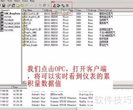 13、 实现数据从PLC传输至OPC服务器的显示。
