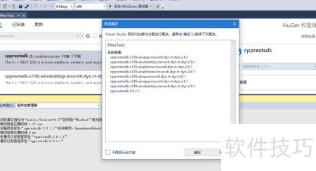 6、 Visual Studio 会提示安装 cpprestsdk 的多个组件,确认后将自动进行安装。