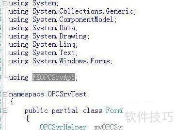 3、 随后定义OPC相关的三个核心接口类:OPCServer、OPCGroup和OPCItem,分别用于服务器、组和数据项的操作。例如声明一个OPCServer对象:KepServer,用于后续与OPC服务器的交互和数据通信。