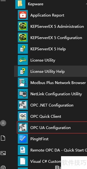 1、 首先配置ICONICS OPC Server UA功能,按图示打开相应菜单项进行操作。