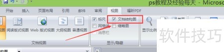 2、 点击视图菜单,选择显示隐藏命令中的文档结构图选项。