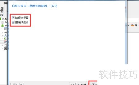 7、 勾选包含列标题和出错继续选项。