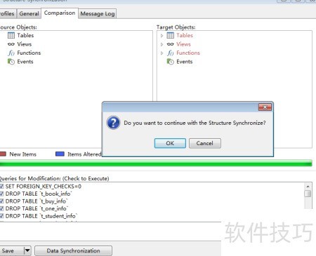 2、 选择book数据库,点击工具菜单中的结构同步选项,操作所示。