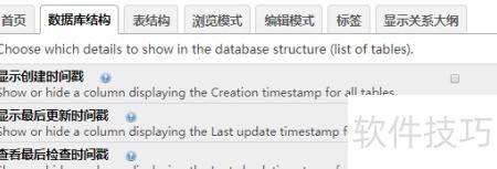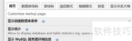 介绍通过phpMyAdmin设置数据库结构主面板的具体操作步骤。