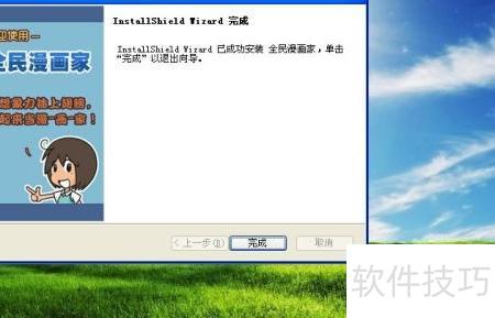 6、 安装进度条走完后,软件会弹出安装完成提示,只需用鼠标左键点击按钮即可,所示。此时漫画家软件已成功安装,用户可以立即开始使用,尽情发挥创意与想象,绘制属于自己的漫画作品。