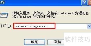 9、 重新注册操作:点击开始菜单,选择运行,在打开框中输入 msiexec /regserver,确认执行即可完成。