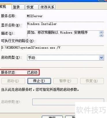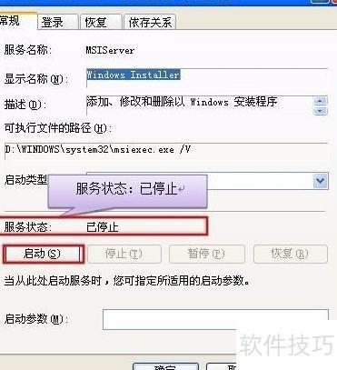5、 查看Windows Installer服务状态,若显示已停止,直接点击启动按钮即可恢复正常。